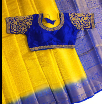 Small tiny yellow cut on the hand is very cute . Pairing this blouse with yellow and dark blue saree would be the best combination of all.